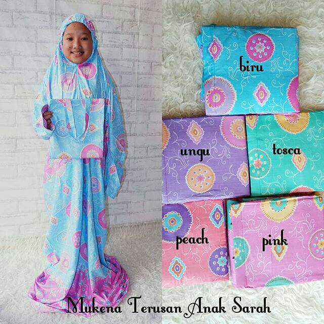 Menambah semangat anak anak untuk latihan beribadah sholat. Mengajarkan anak supaya shalat sejak dini perlu dilakukan nah salah satu caranya ialah dengan melengkapi perlengkapan beribadah supaya anak misalnya dengan mukena anak dan baju koko anak. Jenis mukena yang diminati anak anak adalah yang penuh gambar dan berwarna.