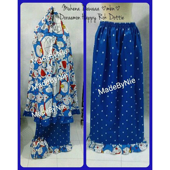 Mukena Doraemon Happy Rok Dottie Mukena Dewasa Kain Katun Handmade Mbn