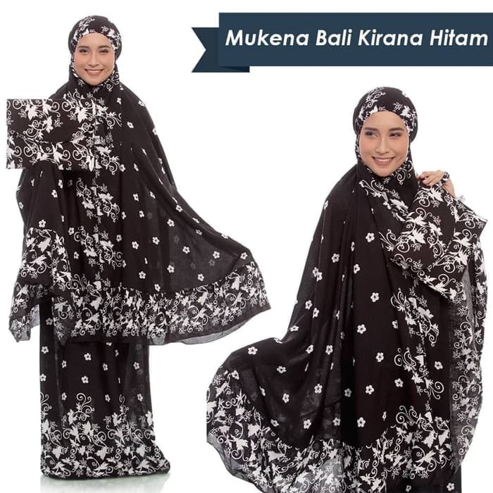 Mukena Dewasa Bahan Rayon Janger Model Terbaru Harga Murah Warna Hitam Putih Motif Bunga