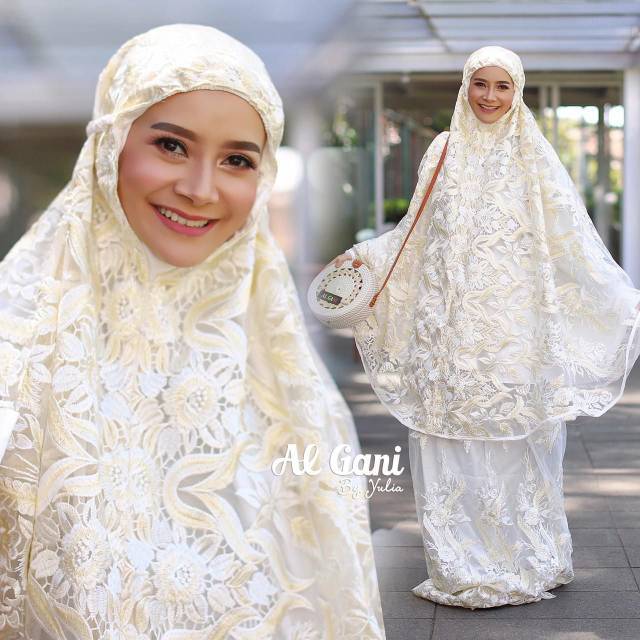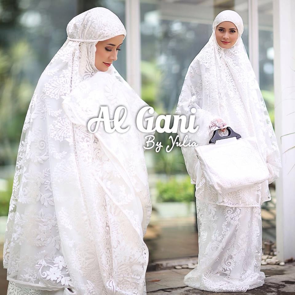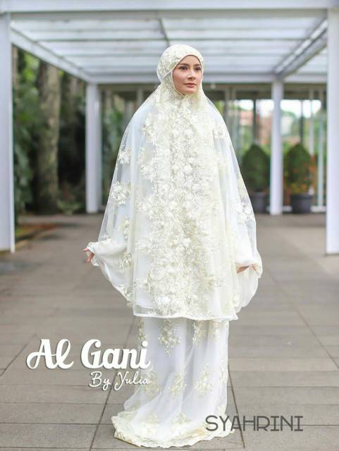 Mukena Syahrini Putih White Full Brukat Cantik By Al Gani Original