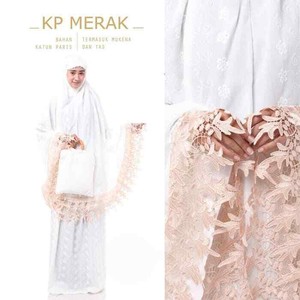 Mukena Katun Premium Tiara Putih Velvet Lace Pink Merah Tw Forwardmall