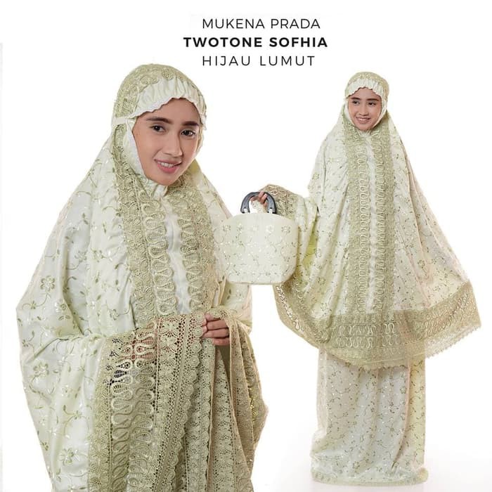 New Collection J1p2 Mukena Prada Twotone Sofhia Hijau Lumut Model Kekinian