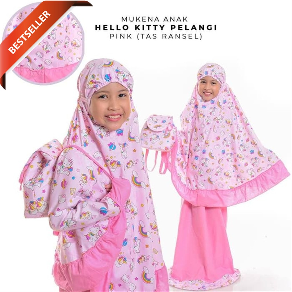 Mukena Anak Katun Karakter Motif Hello Kitty Pelangi 2 13 Thn Paud Tk Sd Mukenah Ransel Adem Murah