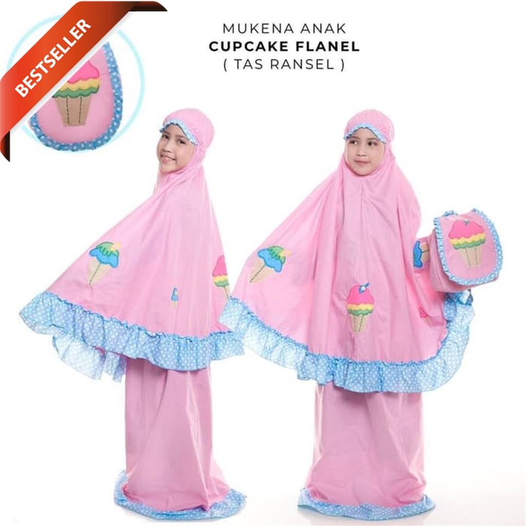 Mukena Anak Sekolah Karakter Katun Flanel Cupcake Usia Paud Pg Tk Sd 3 13 Tahun Motif Ransel