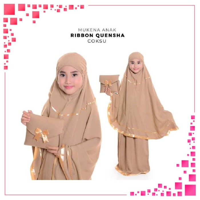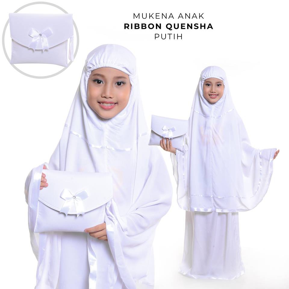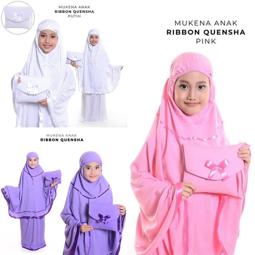 Mukena Polos Anak Usia Tk Sd 5 7 Tahun Motif Pita Ribbon Quensha Bahan Rayon Janger Adem Tas Cantik
