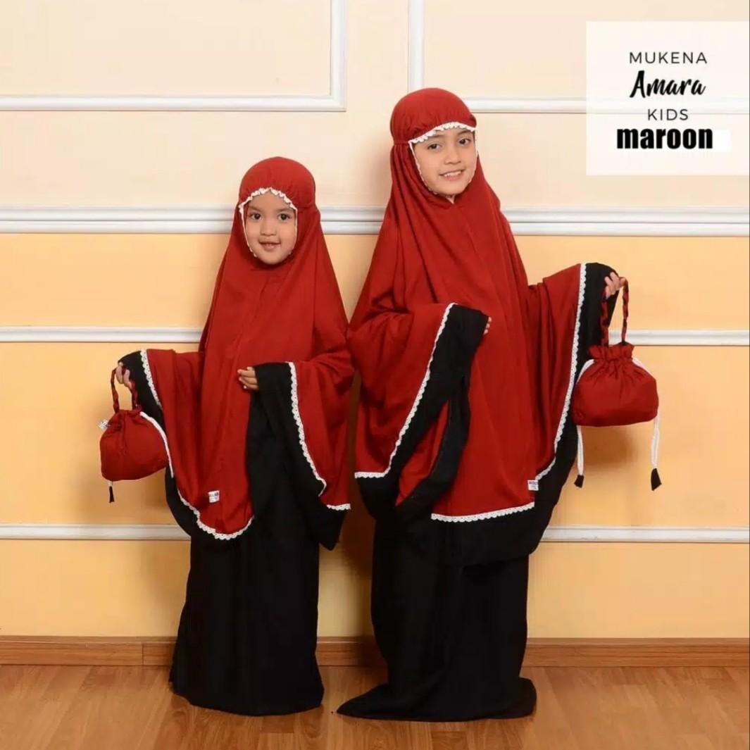 Bajuyuli Mukena Anak Polos Cantik Murah Spandex Balon Marun Peach Mbrn01