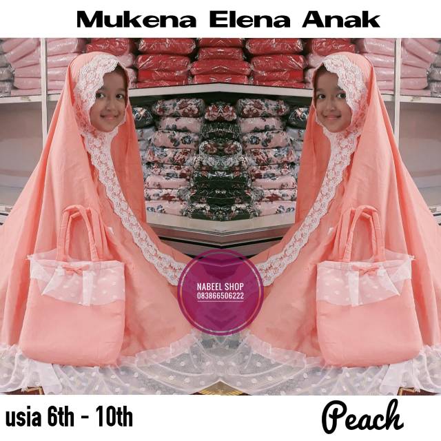 Mukena Anak Remaja Murah Cantik Renda Prada Elena Terbaru 2019 Polos Peach