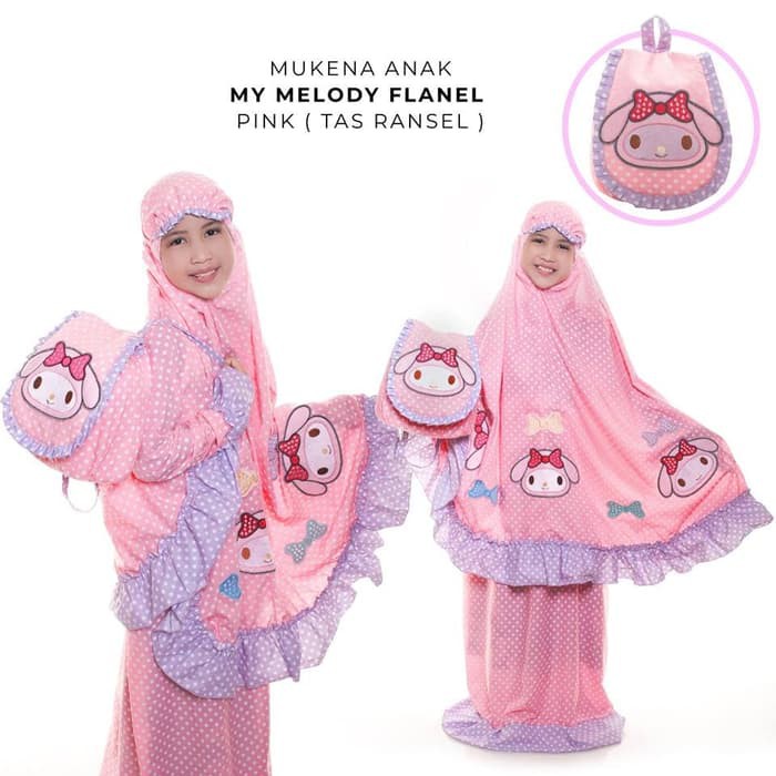 New Fb Mukena Anak My Melody Flanel Pink Tas Ransel Xxl