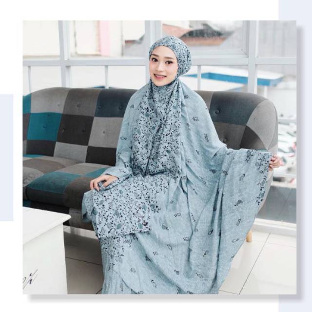Mykena Tazkia Motif Ilalang Garden Blue Grey Mukena Jumbo Bahan Adem Terbaru 2019 Terlaris