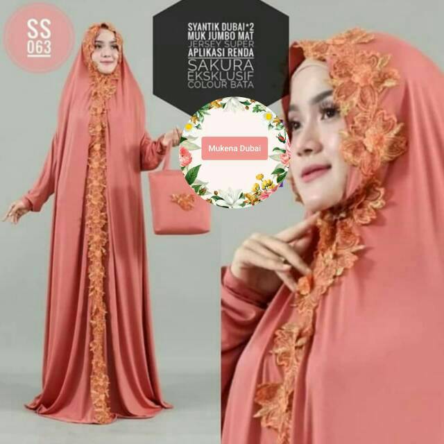 Mukena Dubai Terusan Sakura Dengan Lengan Bahan Jersey Super Jatuh Dan Adem