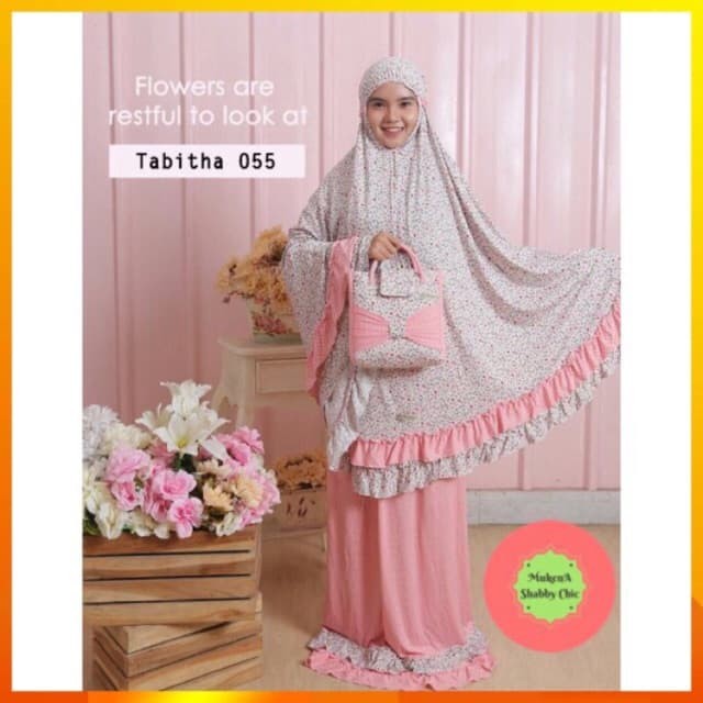 Mukena Tabitha 055 Mukena Jumbo Bahan Jersey Kualitas Terbaik Murah Adem Tidak Menerawang Bermotif