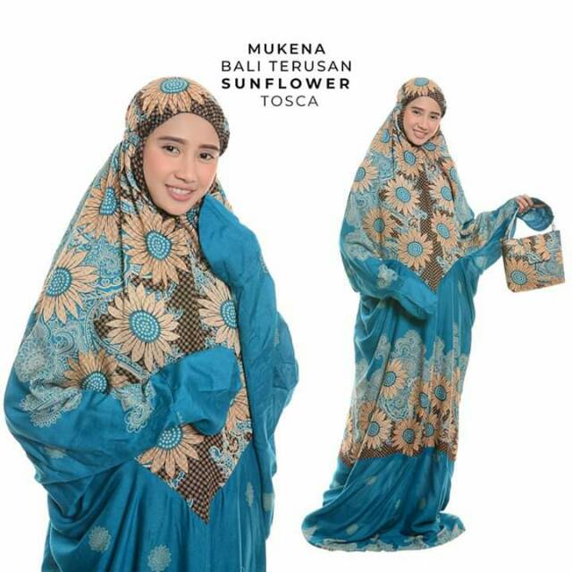 Mukena Terusan Bali Sunflower Bahan Rayon Bali Premium Warna Tosca Ghs