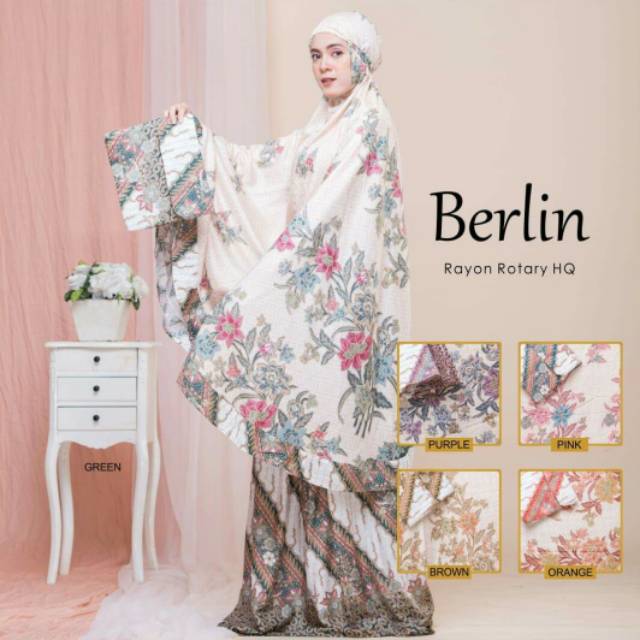 Mukena Batik Berlin Bahan Rayon Rotary High Quality Ukuran Semi Jumbo Warna 5 Macam
