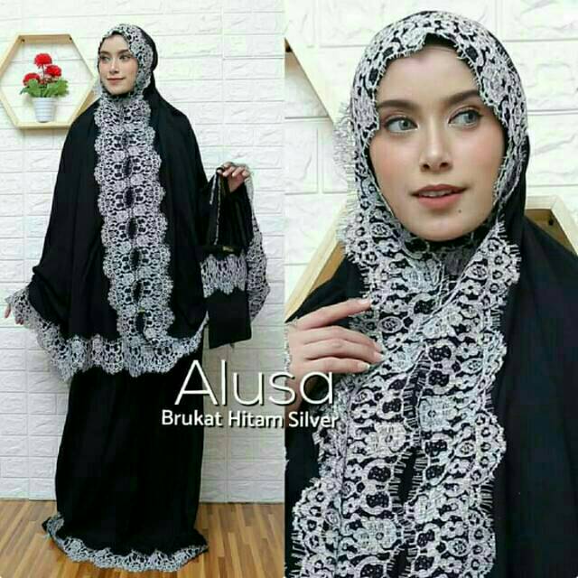 Special 100 Ori Mukena Bali Dewasa Polos Hitam Alusa Renda Brukat