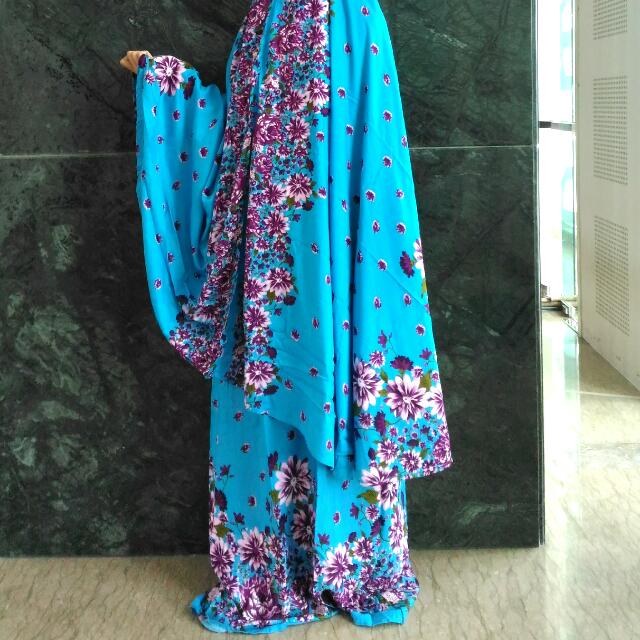 Mukena Bali Motif Bunga Sepatu Semi Jumbo Mu458c Biru Muda Murah