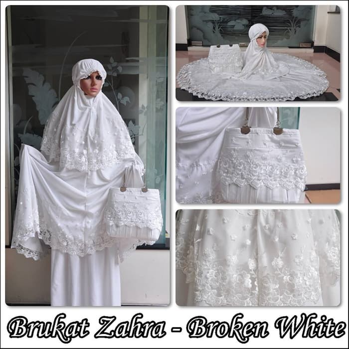 Mukena Dewasa Brokat Zahra Broken White Terusan Aliyah 30 Motif Bunga Katun Rayon Rotary Adem F3p9