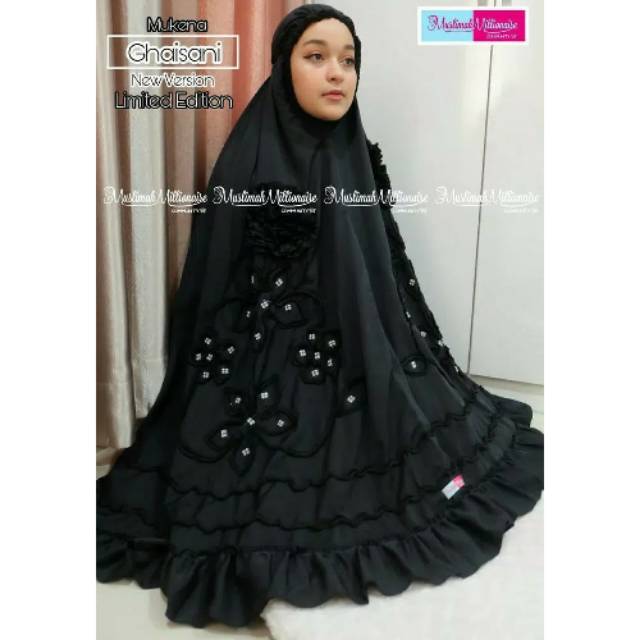 Terbaru Terlaris Termurah Mukena Premium Cantik Manis Warna Hitam Mewah Elegan Ghaisani Black