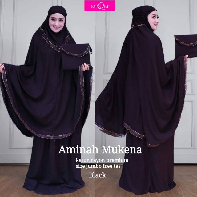 Mukena warna hitam terbaru. Model mukena ini sangat elegan cocok untuk seserahanhantarankado bahan yang lembutmewahjatuhtidak menerawang dan saat di kenakan sangat adem bahan berkualitas jadi warna tdk mudah pudar lebih awet tidak gampang kusut setiap mukena pemakaian bahan sekitar 4m ya kak biar lebih nyaman dipakai ketika solat dan tidak. Sehingga bisa dipakai oleh yang tinggi sekalipun.