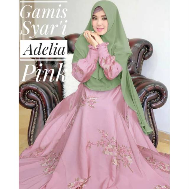 Gamis Syari Maxi Adelia Wolfis Dengan Set Jilbab Hijab Khimar Ceruti Murah Terbaru